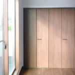 クールモダンな家具・照明が映えるよう、建具やクロスをダークブラウンとアイボリーで落ち着いたイメージに統一しました。ペットとくつろぐLDKには耐アンモニア仕様で汚れに強く、お手入れ簡単なマーブル調フローリングです。