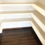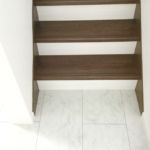 クールモダンな家具・照明が映えるよう、建具やクロスをダークブラウンとアイボリーで落ち着いたイメージに統一しました。ペットとくつろぐLDKには耐アンモニア仕様で汚れに強く、お手入れ簡単なマーブル調フローリングです。LDKにはご主人の夢だったファン照明、1・2階には足元灯を設置。 玄関に宅配ボックスを設置。留守でも荷物を受取り室内側から取り出すことが可能です。