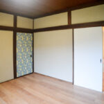 また、LDK奥の和室では押し入れ等はそのまま使用し和の雰囲気も残しつつ、北欧風のおしゃれな襖紙に貼り替えました。さらに畳敷きをフローリングにし、洗練された雰囲気の洋室となりました。