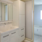 | 水回り | システムキッチン(LIXIL AS ライトグレイン) トイレ(LIXIL ベーシアシャワートイレ) 洗面化粧台(LIXIL MV グロスホワイト) システムバス(LIXIL アライズ アクセントパネル:ダークウォールナット) 給湯器 レンジフード IHクッキングヒーター アイランド 食器洗い乾燥機 人造大理石 |