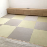 洗面コーナーには、淡い色調の吸放湿壁装材エコカラット、出入り口には目隠しをインテリア格子でアクセントに、気軽に横になりテレビを観ていただける半帖畳など、お部屋全体を柔らかくあたたかい色調へ統一しました。