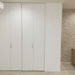 収納扉を天井高まで大きくして出し入れも楽に、見た目もすっきり。