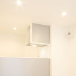 内装は全体的にモノトーン色をベースとして落ち着いた雰囲気を演出できるように配色し、照明もダウンライトのみでスッキリと。