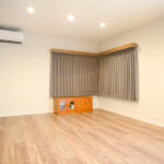 既存のくぼみ部分を活用して収納も兼ねたTVボードを設置しました。