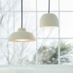 手元を照らす陶製の小型ペンダント照明はお椀とお鍋の蓋をモチーフにしてデザインされています。後出【After アフター】の単体写真に照明器具のアップ写真がありますので併せてご覧ください。