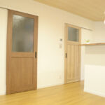 LDKの出入り口が元々2つあり、リフォームしたいけどそちらも残したいとのご要望がありましたので、敢えて色とデザインを変えて雰囲気を楽しめるようにしました。