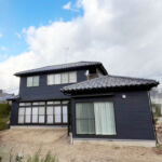 元々白を基調としていた外装をガラッと変えてネイビー色へ。軒天やポーチ天井もあえてこげ茶で塗装し、サッシ枠や破風板金とも色を統一することにより引き締まった印象になるようにしました。