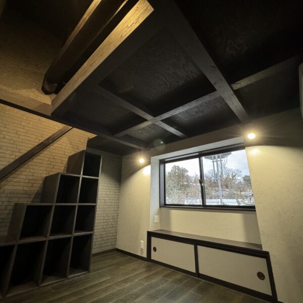 個性が光るロフト付き空間。階段収納や梁の力強さが映える、落ち着きと遊び心を兼ね備えた一室に仕上がりました。