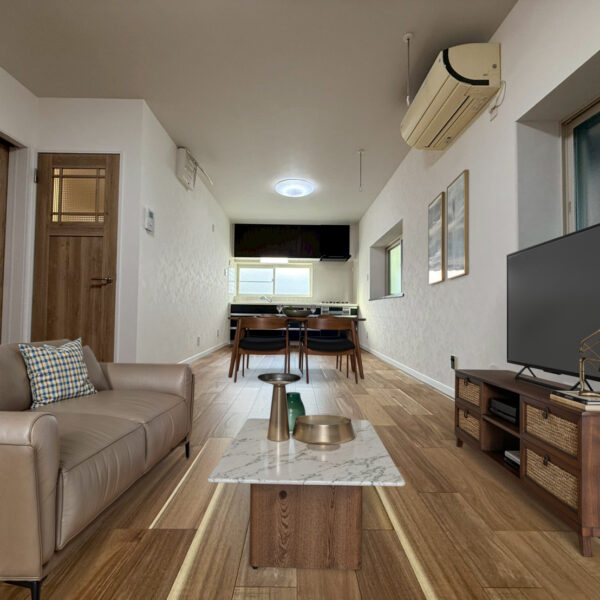 シンプルながらも木の風合いが際立つLDK。落ち着いた色合いでまとめた空間は、毎日の暮らしにやさしさと快適さをプラスします。