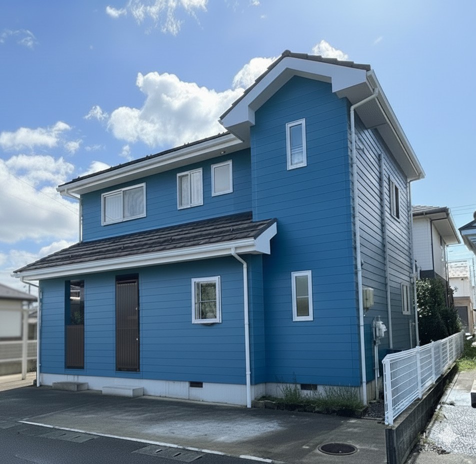 経年劣化で色あせた外壁を、美しいブルーに塗り替え。清潔感と個性を兼ね備えた、街並みに映える外観へ生まれ変わりました。