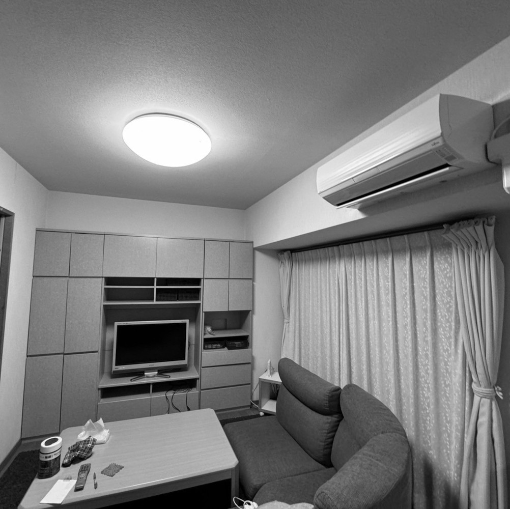 HOME > 工事価格別リフォーム施工事例 > 白を基調にした上質モノトーンLDKへ 大画面TVが映えるスタイリッシュ空間