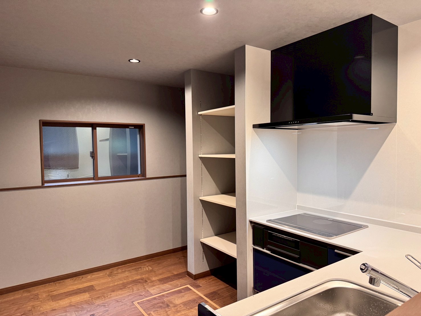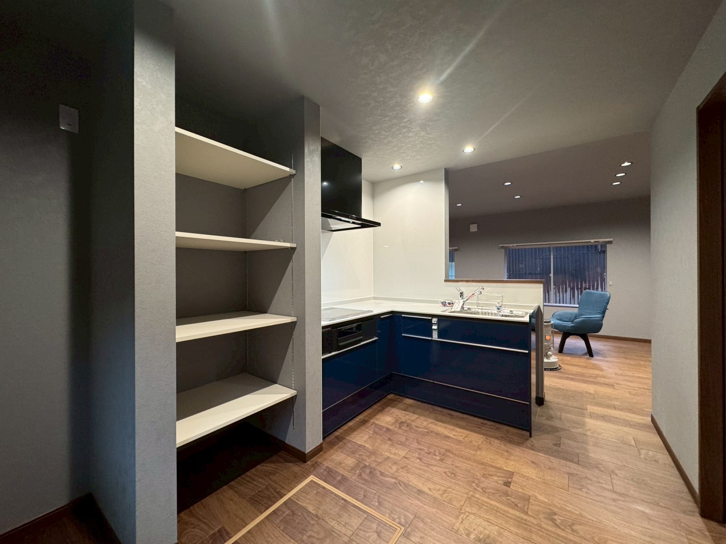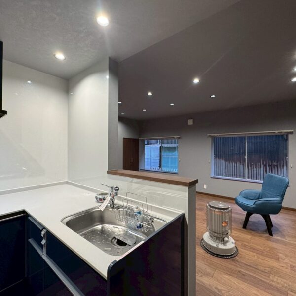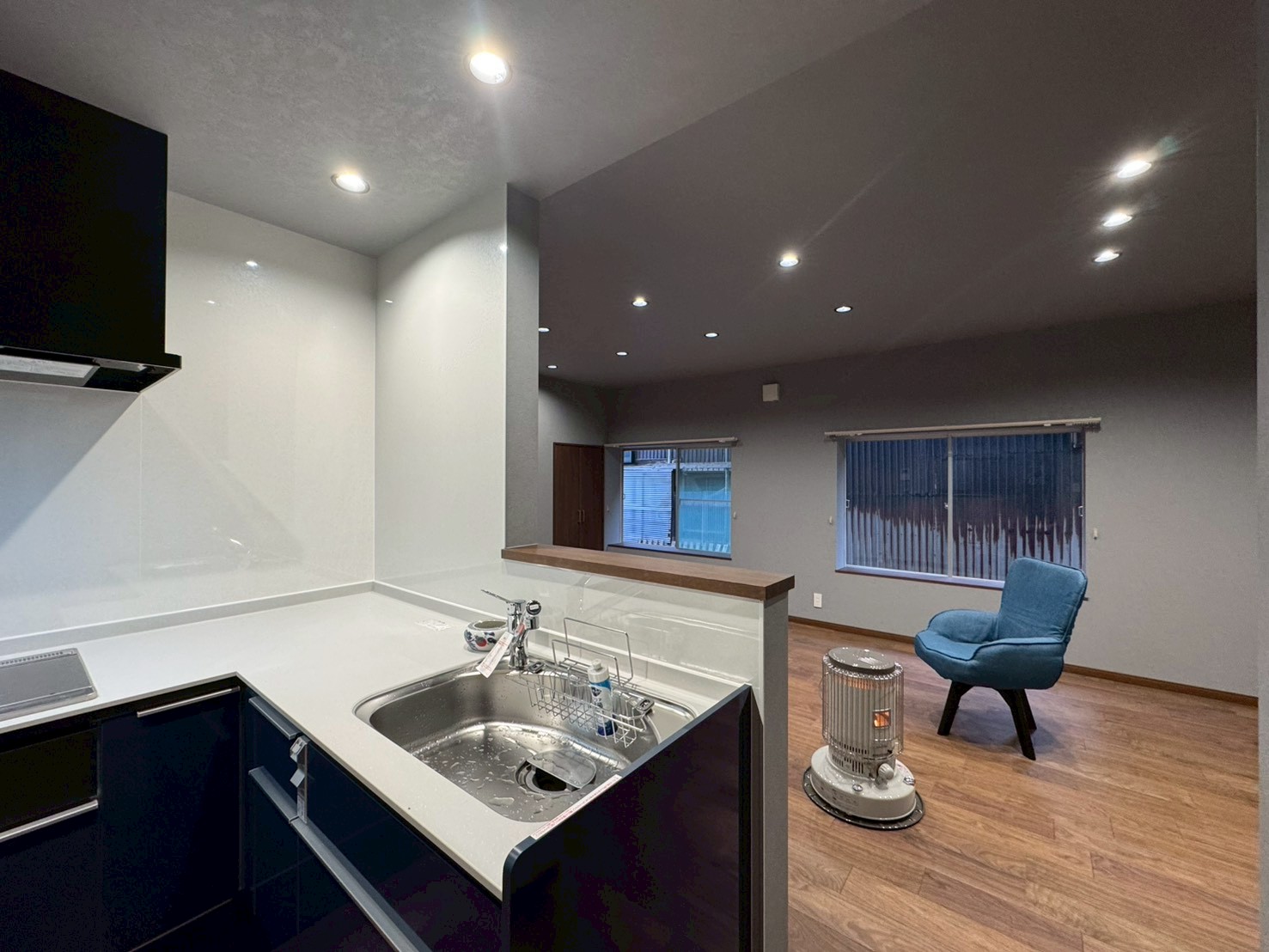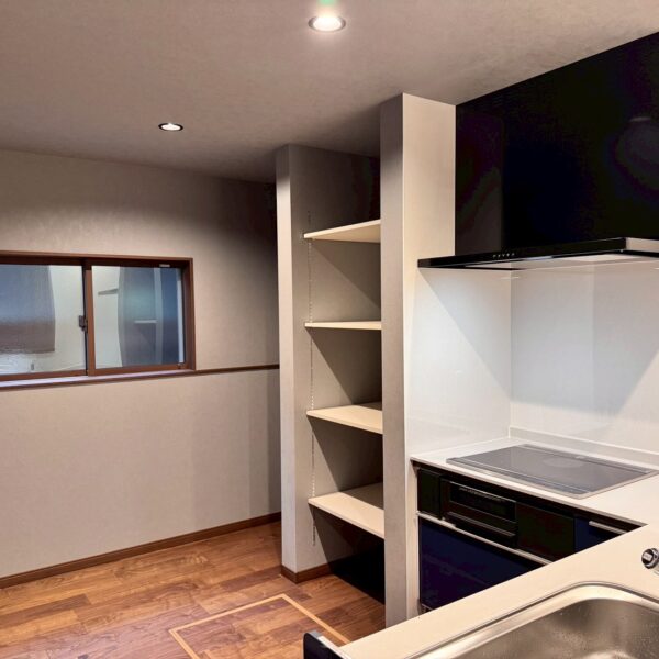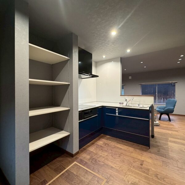 ・キッチンまわりは程よく視線を遮り、生活感を抑えた設計