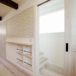 奥様より”明るいLDKに”とのご要望を頂いておりましたので、全体的に白基調にして統一感を出し、照明や窓から光を多く取り込める仕様としました。お部屋のアクセントとしてキッチン前ニッチ内部のモザイクタイルやテレビボード背面のアクセントクロスを使用することでカジュアルな中にも洗練された雰囲気を演出することを実現。 ダイニング(階段脇壁面)には防カビ防ダニ効果もある調湿建材【エコカラット】を施工し、衛生的で心地よい空間へ。また、ダイニング・キッチン天井にはスピーカー付きダウンライトを施工。暮らしのシーンに合わせお好きな 音楽を聴きながら料理やお食事の時間をお楽しみ頂けます。