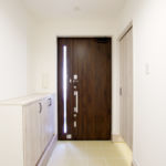 断熱玄関ドア【ジエスタ】を使用。落ち着いた色調と重厚な佇まいで玄関に高級感をもたらします。