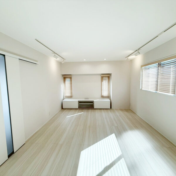 「明るく広々とした空間」を目指し、白とライトベージュで内装を統一。窓からの自然光が部屋の奥まで届く、清潔感と開放感にあふれたLDKへ生まれ変わりました。